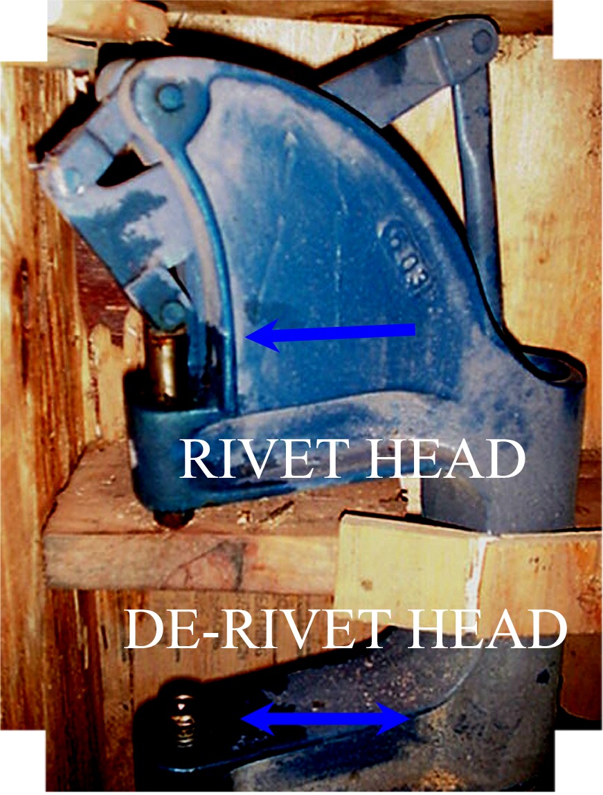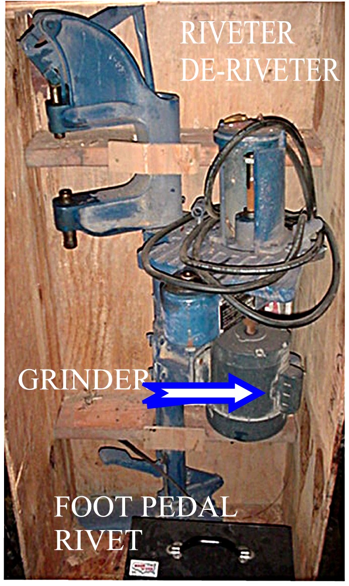 ELECTRIC MOTOR AND FOOT OPERATED RIVETER, DE-RIVETER, GRINDER USED IN