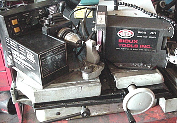 STORM VULCAN HEADMASTER Model 85 (RECOND) GRINDER FOR HEADS ONLY, COMPLETE WITH ACCESSORIES, HAS CUTTER ATTACHMENT FOR ALUMINUM HEADS. Compact design will fit into a corner. Can be converted to an 85 B blockmaster with the addition of an insert in the height column. Priced at $3,800.00