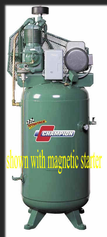 Champion 5HP, 80 gallon, single phase, 3400 RPM, no magnetic starter required. Delivered for only $ 1,800.00