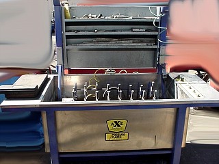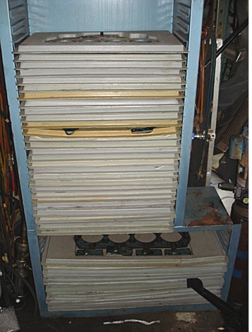 Stainless steel leak test cabinet, loaded with test plates in a separate cabinet. $4,500.00. Heavy duty air holdown cylinder.