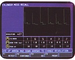 CYLINDER MISS RECALL. Stores consecutive cylinder firings including waveforms, sparkplug burn voltage and burn time. Individual cylinder firings may them be played back to easily identify intermittent cylinder misfires. |