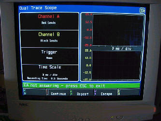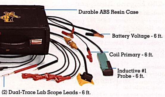 Two isolated sets of leads allow complete dual-trace lab scope capability. Adjustable cursors for precise measurement of time, voltage and frequency. Special mode allows waveforms to be superimposed for accurate comparison. |
