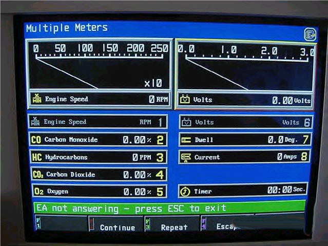 MULTIPLE METERS Select the test values that are to be displayed in analog meter or digital format. Change the meters from volts, ohms, RPM, amps, dwell, timing or 4 gas. All basic engine adjustment readings are available on one easy to read and use screen. |