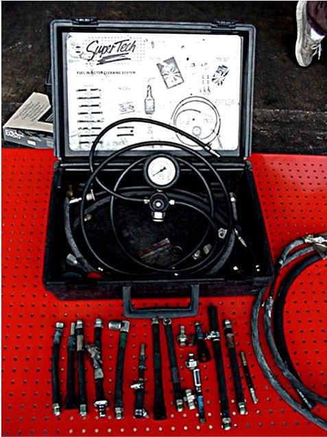 Portable fuel injection cleaning kit. Made by Super Tech. Includes a nice supply of adaptors for connection to fuel injection in most cars. Priced at only $250.00 | ![]() |