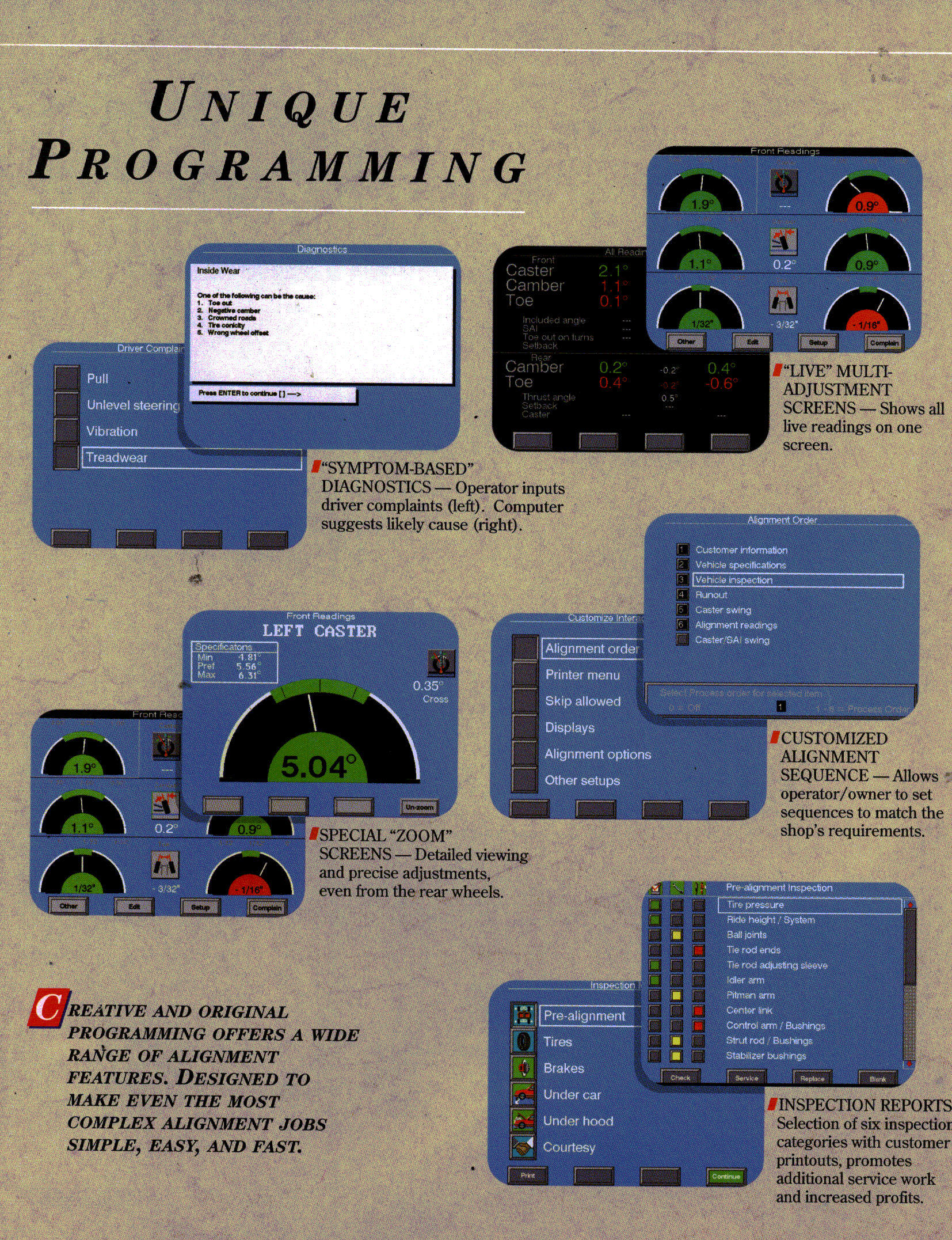 INCLUDES 19" COLOR MONITOR, PRINTER 4 WHEEL A SENSORS
