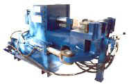 THE MODEL 214-MHDS IS A HEAVY DUTY PIPE BENDER. IT CAN BEND PIPE SIZES UP TO 5" DIAMETER (127MM) X 1/2 WALL THICKNESS (12.7MM). IT CAN BEND FROM 4" - 11" RADII (101.6MM TO 279.4MM). IT GENERATES UP TO 280 TONS OF BENDING FORCES. THIS UNIT IS A COMPRESSION BENDER BUT BECAUSE OF THE RADII AND WALL THICKNESS THE BENDS ARE THE QUALITY OF MANDREL TYPE BENDERS. TOOLING CHANGEOVER TIME ABOUT 5 MINUTES. MANUAL BEND CONTROL WITH PRECISION BEND READOUT MAXIMUM DEGREE OF BEND IS 125°. THIS UNIT IS IDEAL FOR POWER PLANTS, PIPE LINES HIGH PRESSURE HYDRAULIC LINES, SHIP BUILDING AND MOST MARKETS WHERE HEAVY WALL PIPE IS USED. THIS UNIT IS SELF CONTAINED AND CAN BE MOVED FROM SIGHT TO SIGHT. |