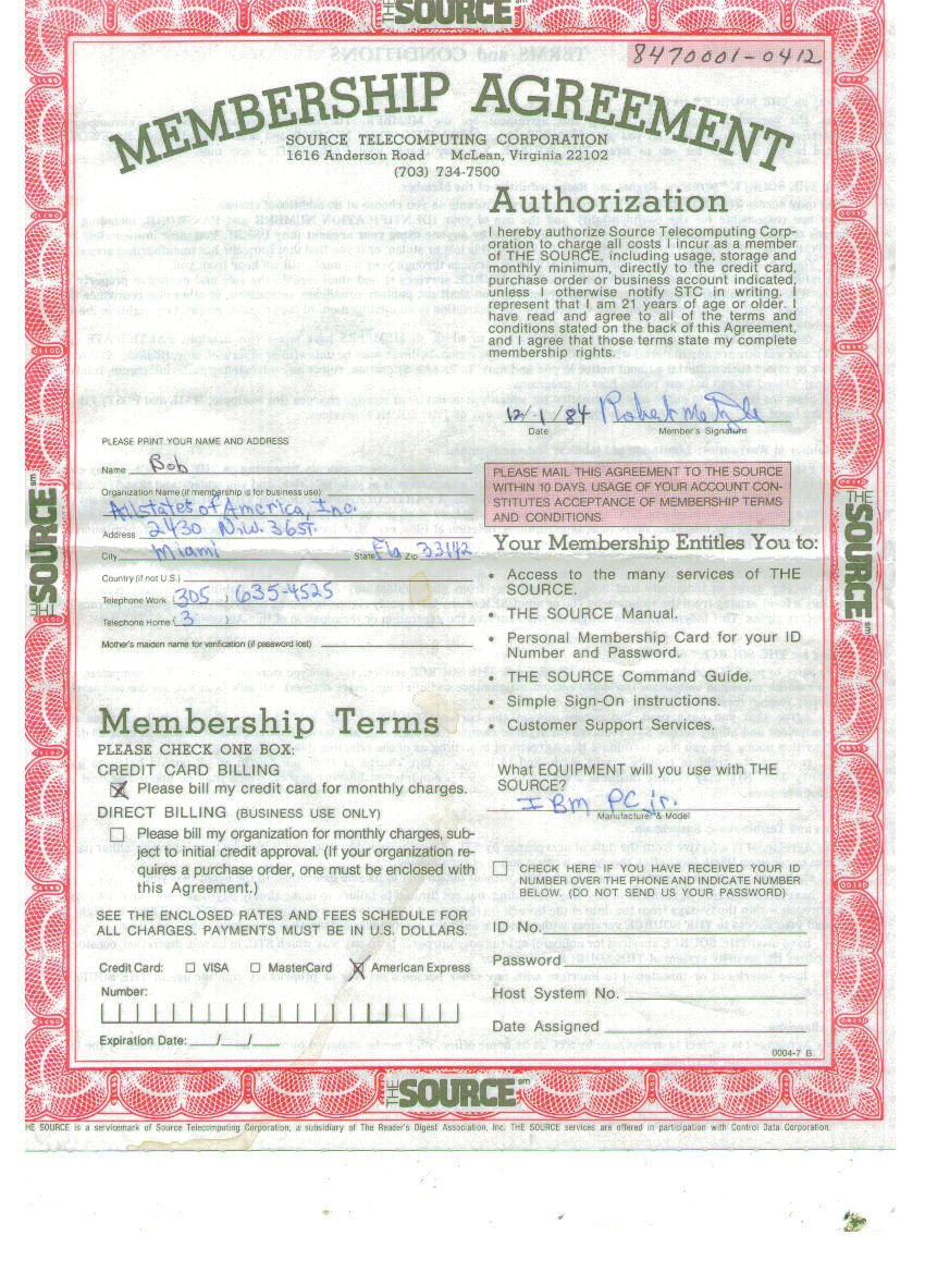 SOURCE ON-LINE APPLICATION IN 1984 BY ALLSTATE'S
