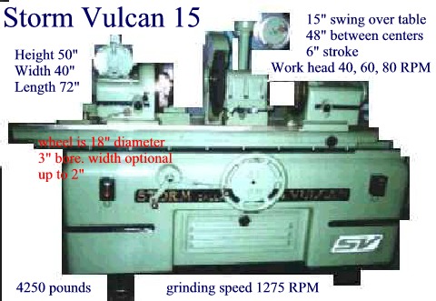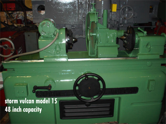 Storm Vulcan 15 crankshaft grinder 48" capacity Weight 4250 lbs. wheel= 18" diameter, up to 2" thick.