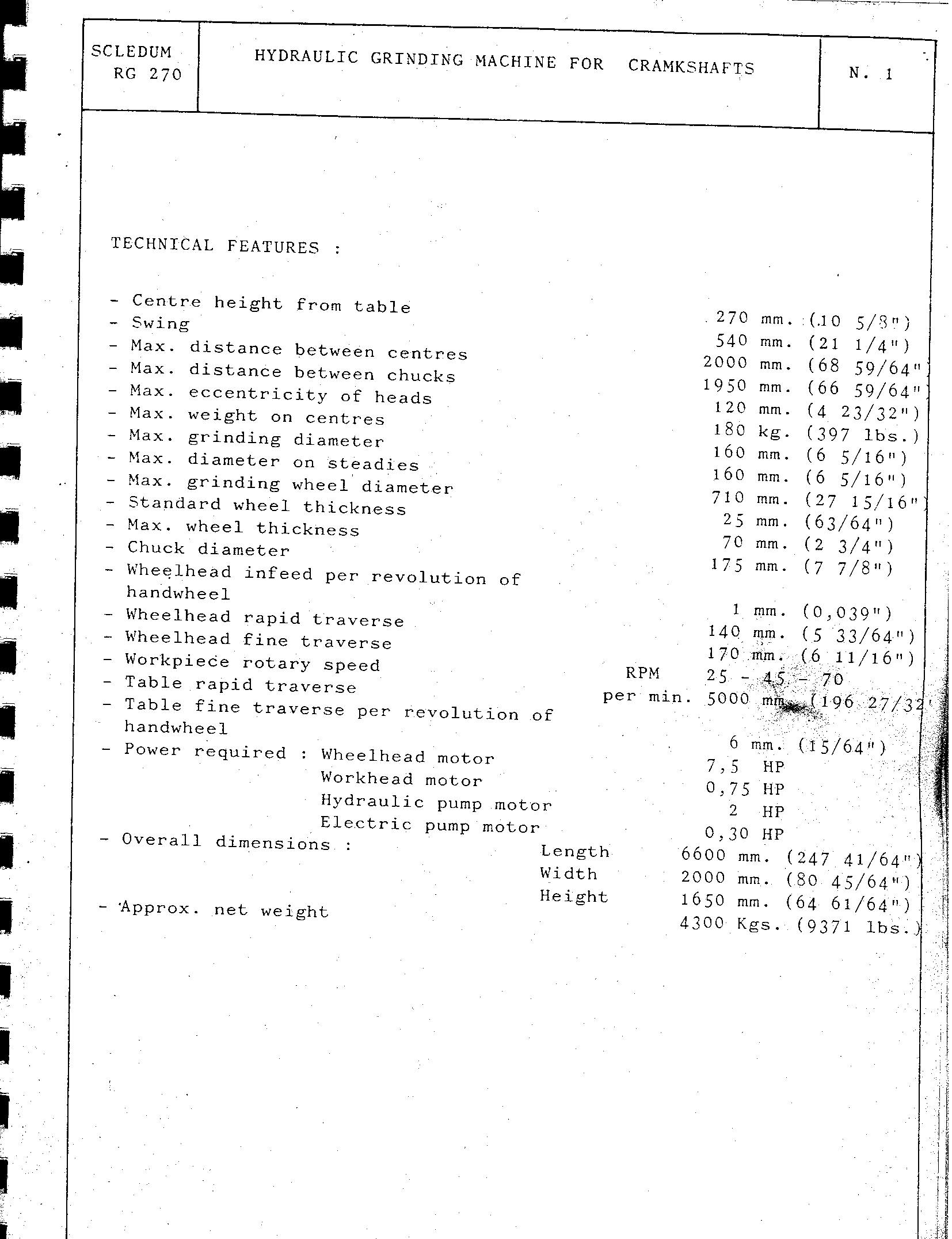 STORM VULCAN (SCHLEDUM) RG270 80 INCH CRANKSHAFT GRINDER
