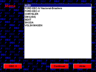this screen we select the brand of the vehicle we want to diagnose. This list is